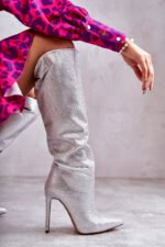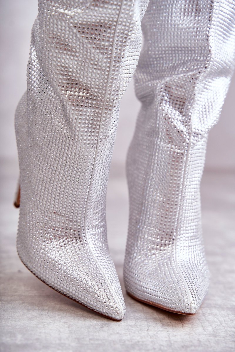 Nuostabūs aulinukai moterims, mėgstančioms išsiskirti iš minios! Pagaminti iš medžiagos. Visą batviršį puošia blizgantys akmenukai, imituojantys cirkonius. Aulinukai turi stiletto tipo kulną. Viduje apšiltinti maloniu pėdai nešiojamam medžiagos pamušalu. Sustiprintas kulnas užtikrins tinkamą pėdos stabilizavimą. Pasirinkdamos dydį, vadovaukitės dydžių lentele.