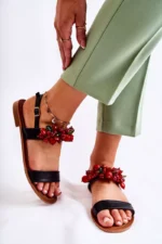 Sutvarkykite savo vasaros stilių su elegantiškais “Black Hally” sandalais, kurie sužavės savo unikalia išvaizda ir patogumu. Šie moteriški sandaļu modeliai pagaminti iš aplinkai draugiškos odos ir dekoruoti įvairių dydžių karoliukais, suteikiančiais išskirtinį bei žavingą dizainą.