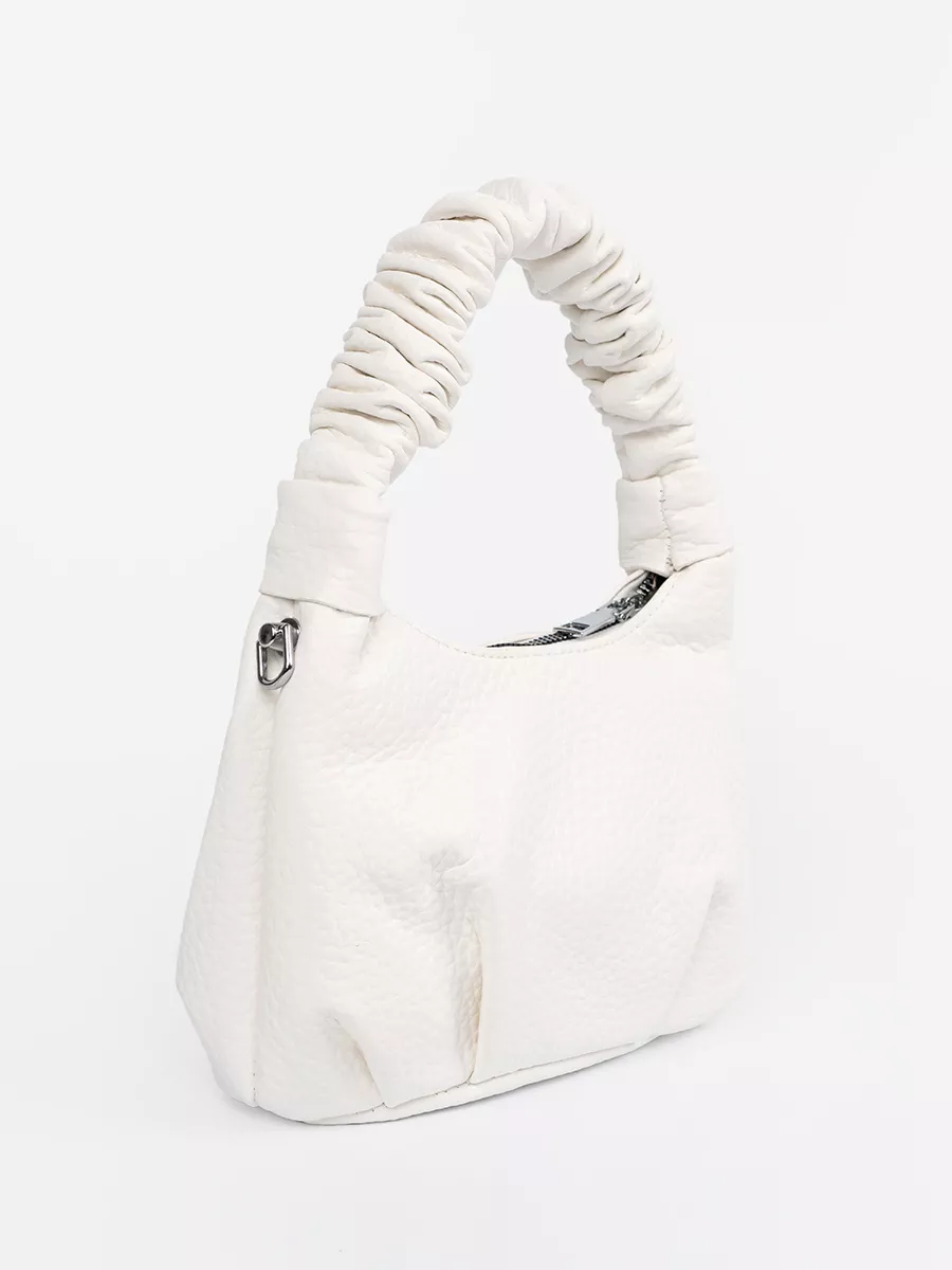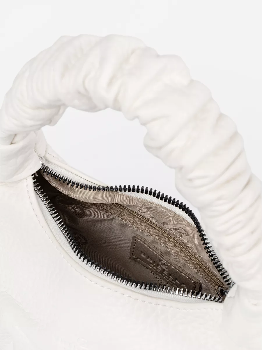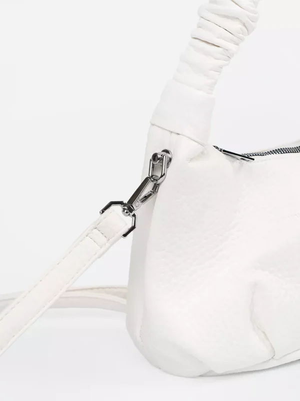 Rankinė pagaminta iš patvarios ir lengvai prižiūrimos medžiagos, užtikrinančios ilgaamžiškumą bei apsaugančios nuo nusidėvėjimo. Balta spalva suteikia rankinei modernumo ir estetikos pojūtį, tuo pačiu sukuriant subtilų ir rafinuotą įvaizdį.