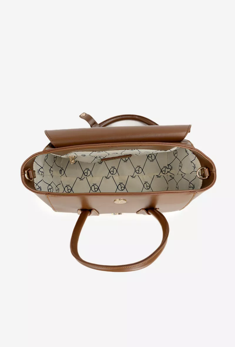 Gaminyje įdiegta reguliuojama, nuimama dirželė, kuri suteikia galimybę pasirinkti nešiojimo būdą, priklausomai nuo jūsų poreikių. Taip pat yra patogios rankenos, susietos su dangčiu, kurie ne tik padidina patikimumą, bet ir suteikia papildomą estetinį žavesį. Tad ši rankinė bus praktiškas pasirinkimas įvairiomis progomis.