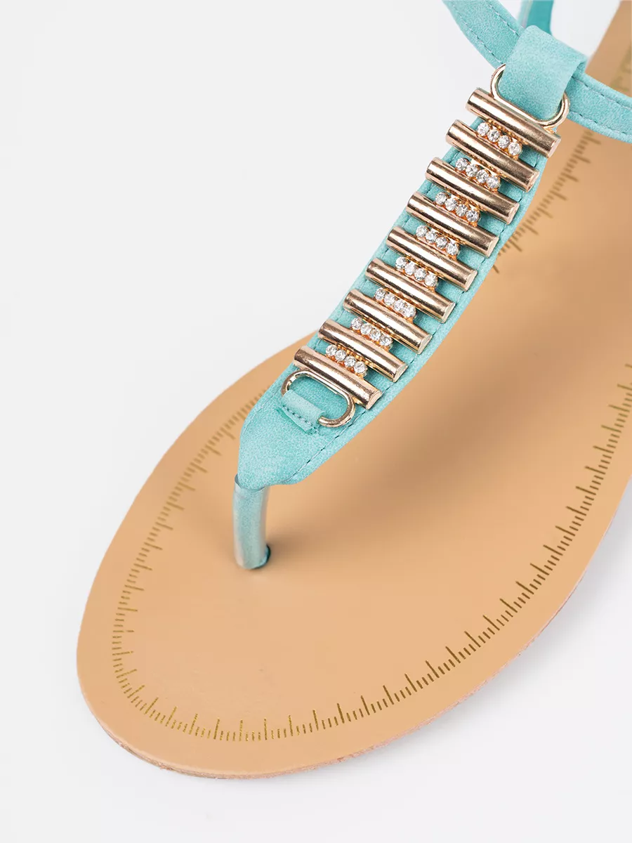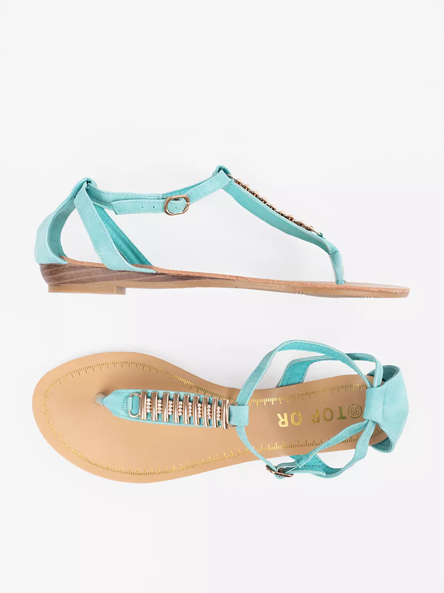 Mėlyni sandalai su aukso puošyba