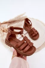 Gladiatorių stiliaus sandalai mergaitėms – tai stilingas ir patogus pasirinkimas šiltoms dienoms. Priekyje yra auksinė detalė, suteikianti ypatingo žavesio. Užsegimas nugaroje su užtrauktuku leidžia lengvai apsiauti ir užtikrina puikų prigludimą. Minkštas vidpadis garantuoja komfortą visą dieną, todėl šie sandalai puikiai tiks kasdienėms stilizacijoms ir vasaros nuotykiams. Renkantis dydį, prašome vadovautis dydžių lentelę.