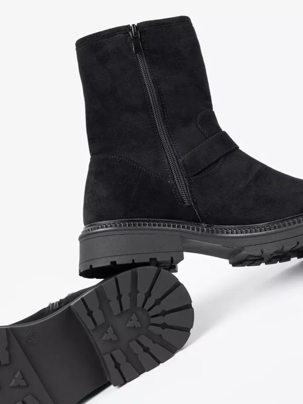 Subtilios, bet ryškios sidabro spalvos sagtimis – tai šių juodų aulinukų dizaino pasididžiavimas. Jos ne tik suteikia batams išskirtinumo, bet ir leidžia lengvai reguliuoti aulinuko prigludimą prie kojos, užtikrinant maksimalų komfortą. Kiekviena detalė apgalvota: nuo dailiai apdorotos odos iki tvirto, bet elegantiško kulno. Šie aulinukai yra sukurti atlaikyti miesto šurmulį ir kasdienį dėvėjimą, išlaikant savo nepriekaištingą formą ir estetiką. Jie puikiai tiks kaip akcentas tiek minimalistiniam, tiek drąsesniam įvaizdžiui.