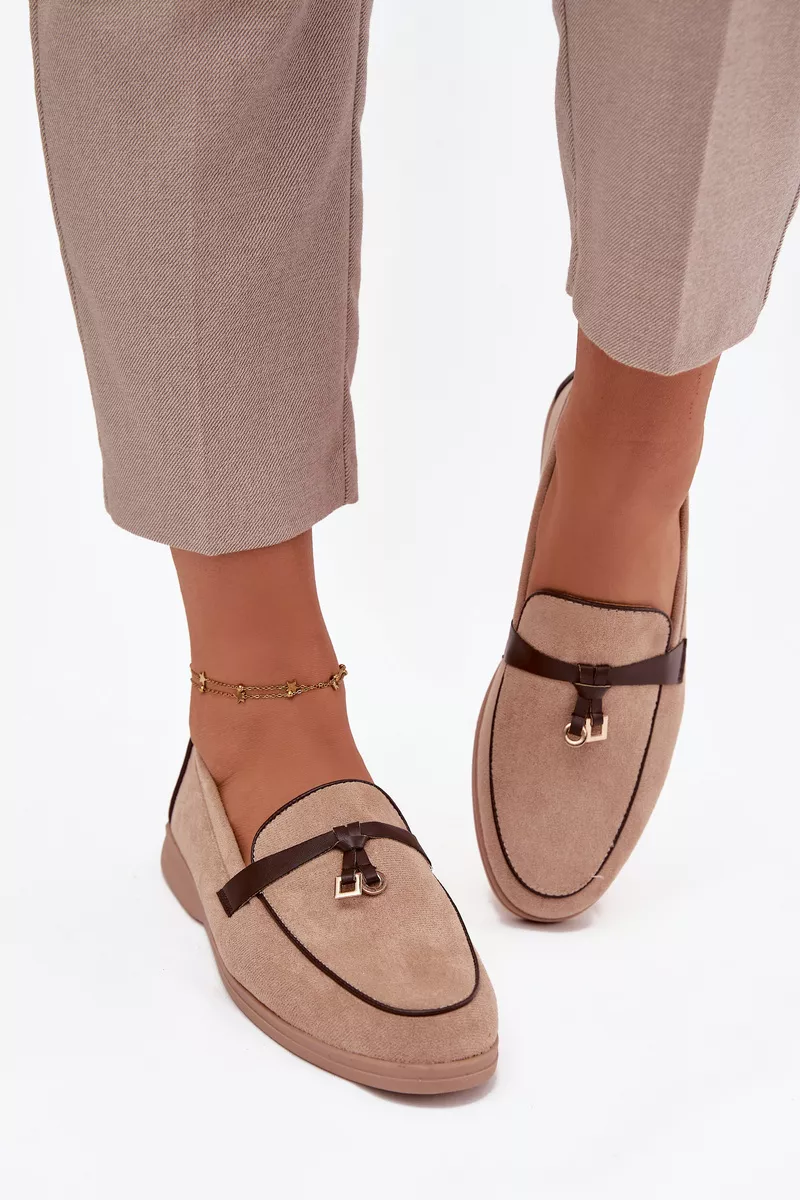 Mokasinai Loafers moteriški iš ekologiško zomšo atspindi eleganciją ir tvarumą viename. Šie stilingi bateliai puikiai dera prie įvairių aprangos stilių ir yra nepakeičiama kolekcijos dalis kiekvienai moteriai, vertinančiai kokybę ir komfortą. Subtilūs dekoratyviniai elementai priekio dalyje suteikia šiems mokasinams išskirtinumo ir žavesio.