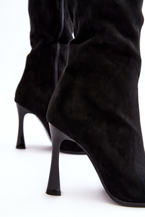 Moteriški aulinukai iki kelių. Užsegami užtrauktuku. Pagaminti iš eko zomšo. Su stiletto tipo kulnu. Suapvalinti priekiai. Viduje apšildyti avalynės flisu. Viso aulinuko ilgio siūlė. Šį modelį galėsite priderinti prie daugelio įvaizdžių! Pasirinkdami dydį, vadovaukitės dydžių lentele.