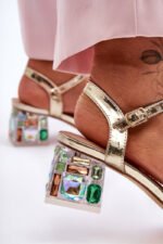 Būkite pirmas aprašęs “Moterims aukštakulniai sandalai su kristalais, auksiniai SBarski MR1037-01”