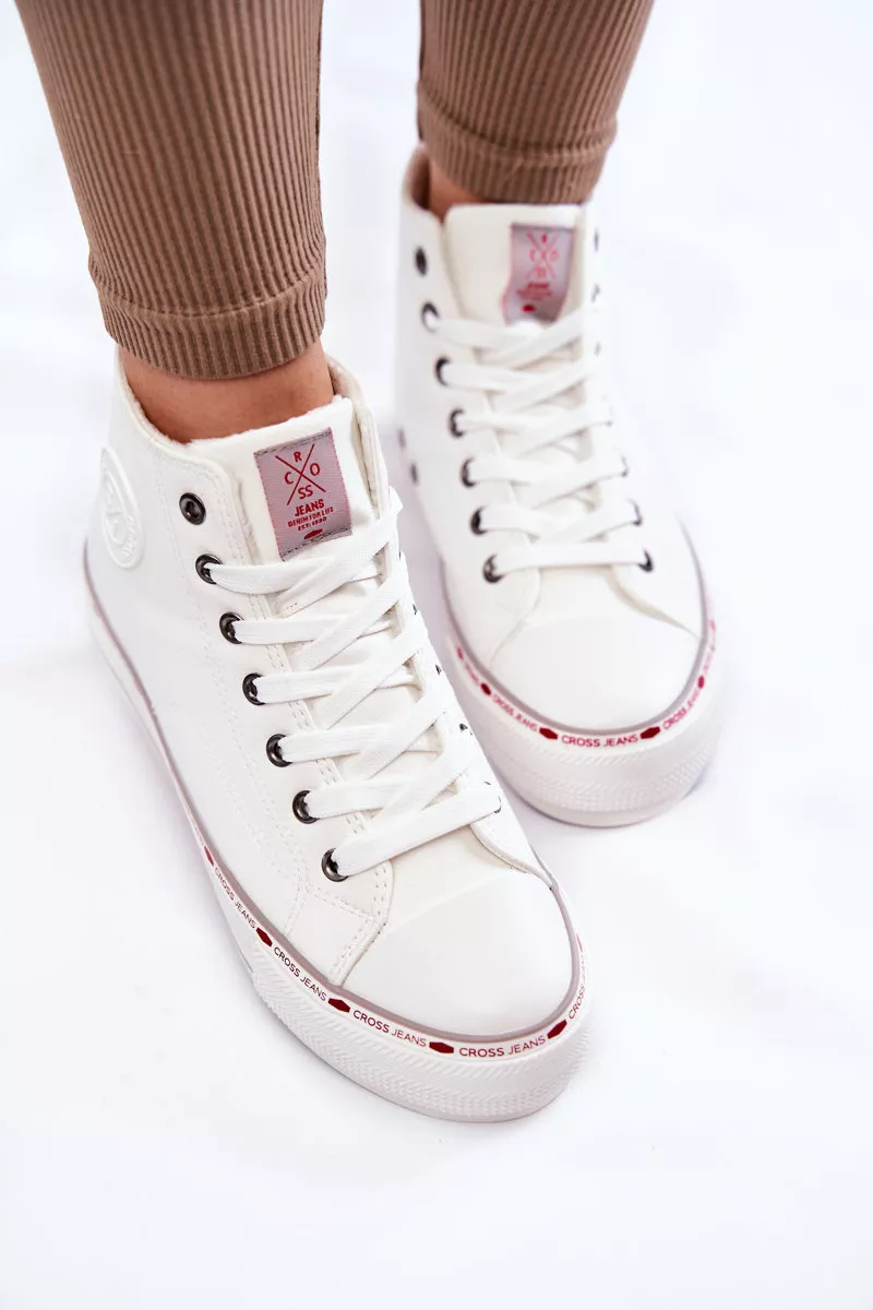 Damski Cross Jeans KK2R4044C sportbačiai yra neprilygstamas pasirinkimas moterims, vertinančioms komfortą ir stilių. Šie aukšti sportiniai bateliai, kurių viršus pasiekia virš kulkšnies, suteiks Jūsų rudens garderobui elegancijos ir šilumos. Batų viršutinė dalis su dekoratyviniu logotipu suteikia unikalų stiliaus akcentą, o viduje esanti minkšta danga užtikrins komfortą visą dieną.