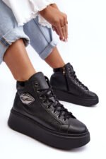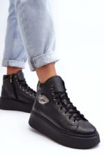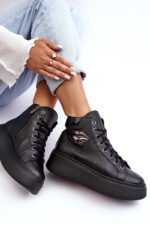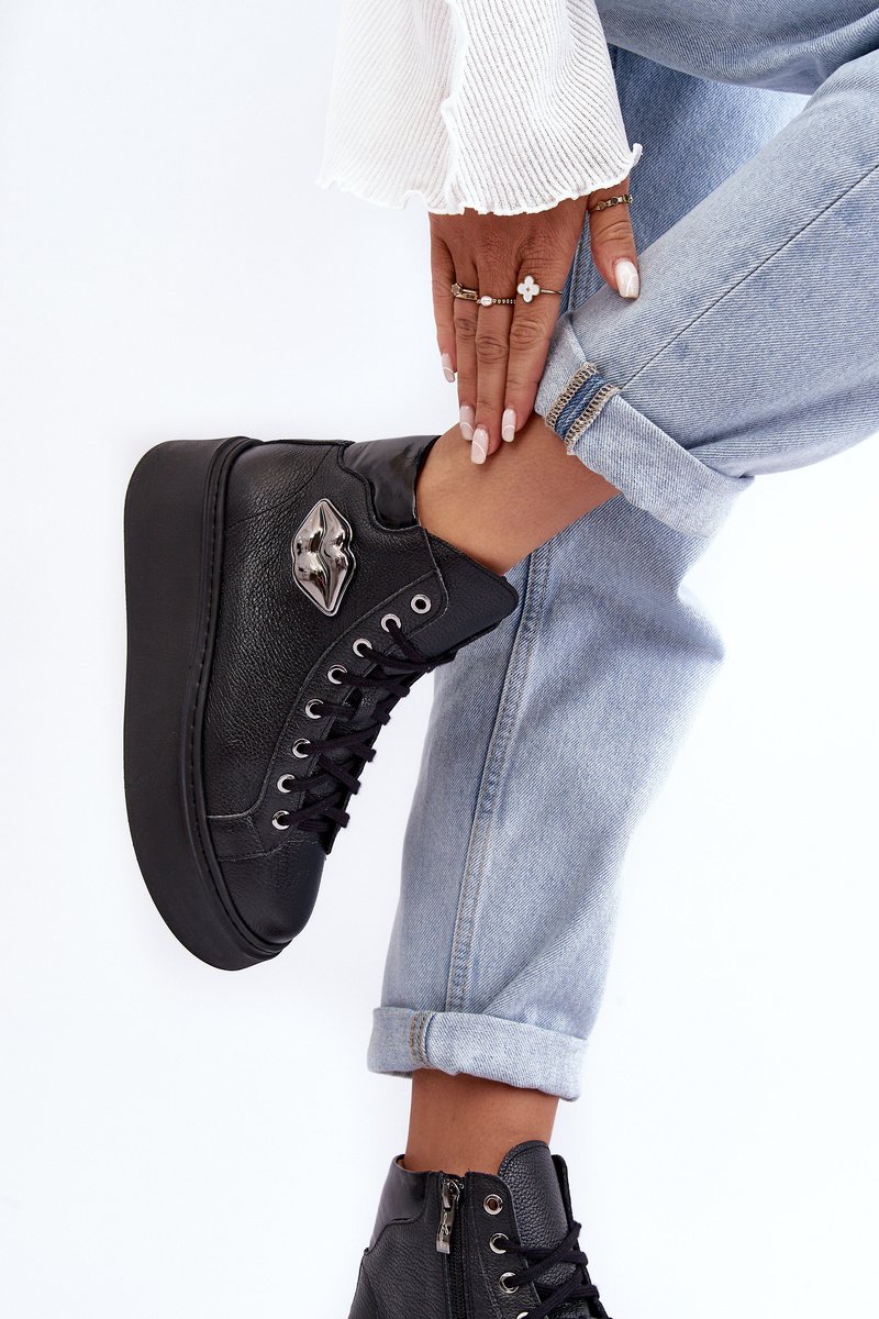 Aukšti moteriški aulinukai pagaminti iš natūralios odos. Jie turi raištelius ir užtrauktuką aulinuko šone. Šis patogus modelis yra ant masyvios platformos. Vidpadis taip pat pagamintas iš natūralios odos. Klasikinis dizainas, patogus kirpimas ir madingas puošybos elementas išskiria šiuos aulinukus iš kitų modelių! Rinkdamiesi dydį, prašome vadovautis dydžių lentele.