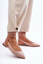 Madingi moteriški balerinai yra ant plokščio kulno ir papuošti mažomis kniedėmis. Jie turi atvirą kulną ir smailų priekį. Šis modelis yra suvarstomas aplink blauzdą. Minkštas, ekologiškos odos vidpadis užtikrins komfortą naudojimo metu. Šių batų padas yra neslystantis. Rinkdamiesi dydį, vadovaukitės dydžių lentele.