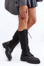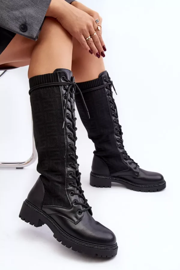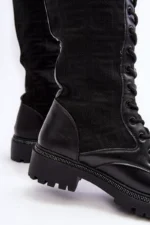 Šie moteriški batai yra pagaminti iš aukštos kokybės sintetinės odos ir tekstilės derinio, kas suteikia jiems unikalų ir patrauklų išvaizdos bei ilgaamžiškumo derinį. Plokščias kulnas užtikrina komfortą, kad galėtumėte vaikščioti visą dieną be nuovargio ar diskomforto, o suapvalintas priekinis pėdos formos dizainas puikiai dera su įvairiomis aprangos stiliaus tendencijomis.