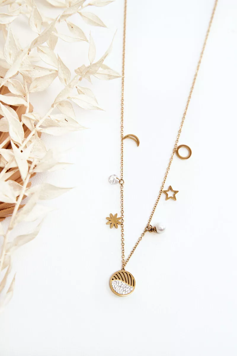 Visi pakabukai, esantys šioje kaklo grandinėje, yra apgalvotai sukurtas dizainas, leidžiantis pabrėžti kiekvienos moters individualumą. Pritvirtinti piekarinčiai subtiliai atspindi šviesą, suteikdami papildomo blizgesio ir dėmesio prikaustymo bet kuriam deriniui.
