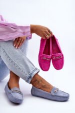 Moteriški mokasinai idealiai tinka įvairioms progoms! Jie pagaminti iš malonaus liesti eko zomšo. Šis modelis priekyje turi plastikinį papuošalą. Mokasinai yra su neslidžiu padu. Minkštas eko odos vidpadis užtikrins komfortą avint batus. Be to, jis yra švelniai perforuotas. Renkdamiesi dydį, vadovaukitės dydžių lentele.