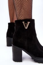 Moteriški auliniai batai su stulpelio formos kulnu ir platforma. Pagaminti iš eko zomšo. Ant bato bato priekio išorinės pusės yra dekoratyvinis elementas – raidė, puošta deimantukais. Vidus neapšildytas. Sutvirtintas kulno stabilizatorius užtikrins stabilumą. Šis modelis puikiai papildys jūsų rudens ir žiemos įvaizdį! Pasirinkdami dydį, vadovaukitės dydžių lentele.
