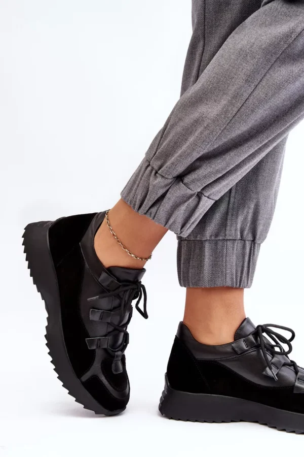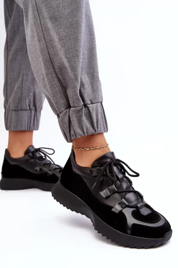 Savoja, modernios dizaino ir aukščiausios kokybės medžiagų derinys. Šios stilingos juodos sportinės batelės „M01/2 Zazoo“ yra meistriškai pagamintos iš natūralios odos, kurios suteikia ilgaamžiškumo ir prabangos jausmą. Pamirškite nemalonias pėdos pojūčius – šios avalynės minkštos odos vidpadis užtikrina komfortą kiekviename žingsnyje.