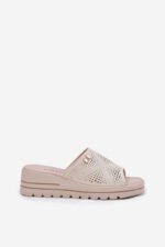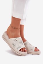 Moteriškos šlepetės, pagamintos iš natūralios odos, yra elegantiškas ir patogus pasirinkimas šiltoms dienoms. Jų platforma užtikrina stabilumą ir patogumą visą dieną. Šone ant dirželio yra subtilus dekoratyvinis elementas, suteikiantis joms išskirtinumo. Odos vidpadis garantuoja dėvėjimo komfortą, todėl šios šlepetės yra puikus pasirinkimas vasaros įvaizdžiams. Idealiai tinka kasdienai. Renkantis dydį, prašome vadovautis dydžių lentele.