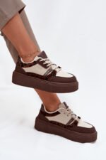 Moteriški platforminiai sportiniai bateliai Big Star SS274356, rudos ir smėlio spalvos, yra nepriekaištingas stiliaus ir komforto derinys. Pagaminti iš aplinkai draugiškos odos, jie pasižymi elegantišku dizainu ir suteikia papildomą aukštį bei lieknina siluetą. Patogi minkšta pado konstrukcija leidžia jaustis patogiai visą dieną, o klasikinė raištelių sistema užtikrina puikų prisitaikymą prie kojos.