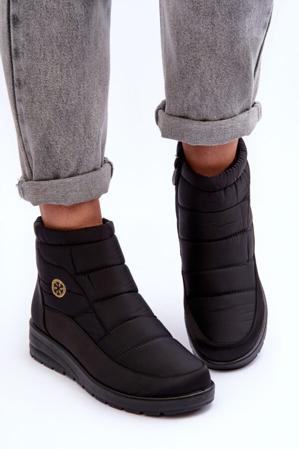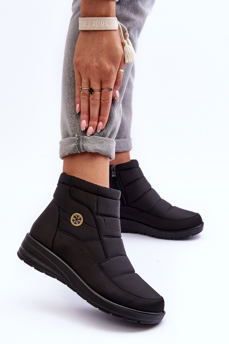 Klasikiniai moteriški sniego batai pagaminti iš medžiagų, atsparių lietui, šalčiui ir vėjui. Jie turi storą kailio pamušalą. Sniego batai yra ant platformos. Šis modelis užsegamas šone esančiu užtrauktuku. Papildomai sustiprintas kulno užkulnis. Puikus modelis rudens-žiemos sezonui! Renkantis dydį, prašome vadovautis dydžių lentele.