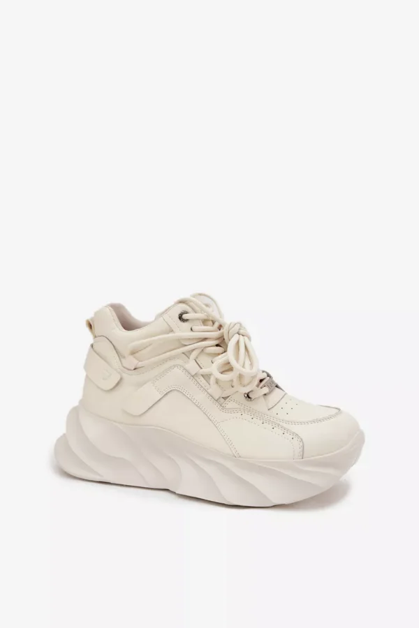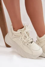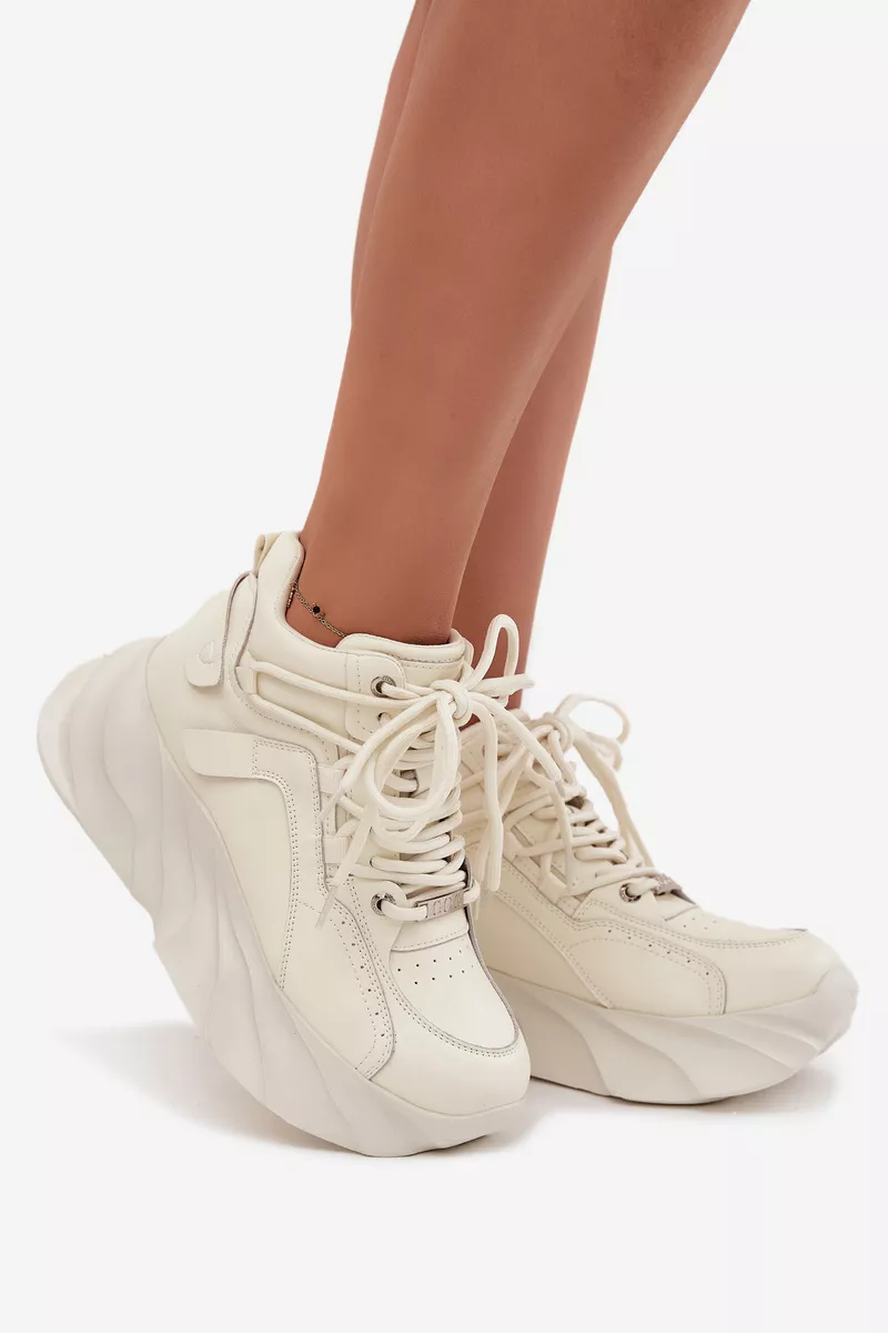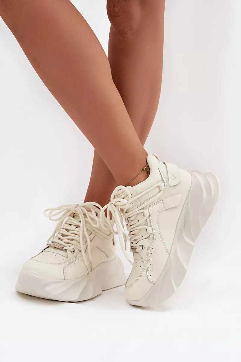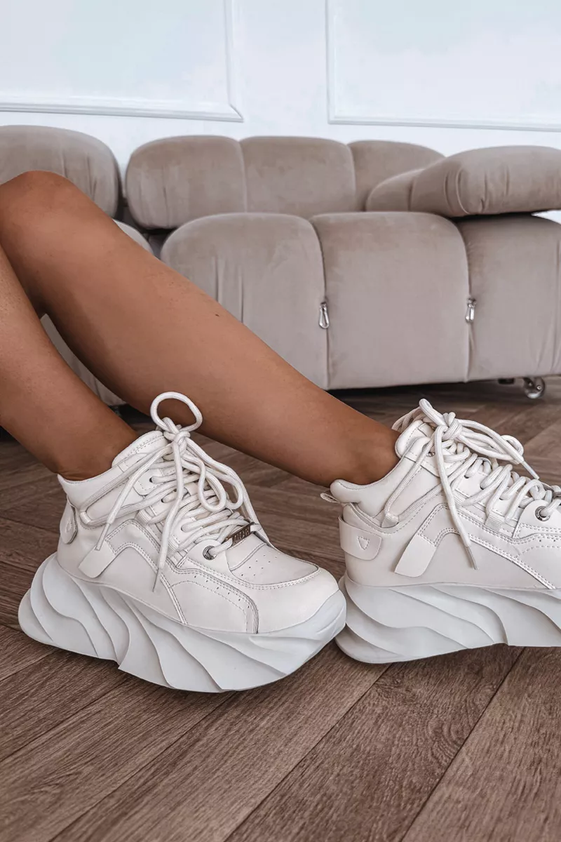 Moteriški GOE sportbačiai yra puikus patogumo ir modernios išvaizdos derinys. Pagaminti iš aukštos kokybės natūralios odos, jie atrodo stilingai ir yra itin patvarūs. Priekyje suvarstomi raišteliais, leidžia puikiai priglusti prie pėdos, o masyvi platforma suteikia jiems madingą charakterį ir užtikrina dėvėjimo komfortą. Tai modelis, puikiai tinkantis kasdienėms stilizacijoms – tinka tiek prie džinsų, tiek prie sportinių ar laisvalaikio derinių. Renkantis dydį, prašome vadovautis dydžių lentele.