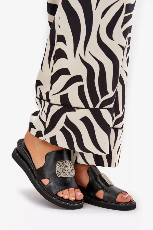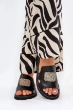Šie dėmesį prikaustantys moteriški sandalai, pagaminti iš ekologiškos odos, yra puikus stiliaus ir komforto derinys. Juodos spalvos, puoštos įmantriais dekoracijomis, šios avalynės detalės ne tik prideda elegancijos, bet ir subtilų žavesį jūsų išvaizdai. Sandalai pasižymi ypatingu patogumu ir stabilumu, todėl tai yra nepakeičiama avalynė vasaros dienoms. Minkštas padukas užtikrina komfortą visą dieną, o jų lengva konstrukcija garantuoja lengvumą ir universalumą naudojant kasdien ar einant į elegantiškus renginius.