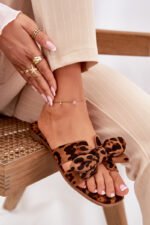 Moteriškos šlepetės pagamintos iš ekologinio zomšo. Įtvirtintos ant plokščio kulno, derinant komfortą su subtiliu stiliumi. Batų priekis puoštas išpjovomis ir žavinga bankete, suteikiančia jiems išskirtinumo. Puikiai tinka prie vasarinių suknelių, sijonų ar šortų, derinant paprastą dizainą su funkcionalumu, puikiai įsiliejant į atostogų stilių. Rinkdamiesi dydį, prašome vadovautis dydžių lentele.
