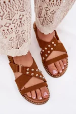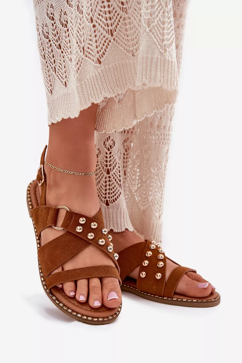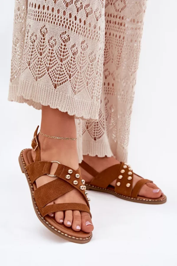 Sandalai plokščiu kulnu su kniedėmis