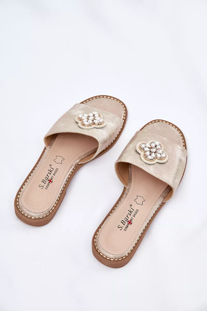 Eleganti moteriški sandalai sukurti iš aukščiausios kokybės ekologiškos odos – puikus pasirinkimas šiltomis dienomis. Plokščias kulnas užtikrina komfortą ir stabilumą visą dieną. Odinė padas garantuoja patogumą ir gerą ventiliaciją, kuri ypač pravers karštomis dienomis. Subtili dekoracija priekyje suteikia sandalui žavesio, sujungdama eleganciją ir modernų stilių. Šie sandalai puikiai papildys tiek kasdieninę, tiek formalesnę aprangą ir puikiai dera su vasaros drabužiais.
