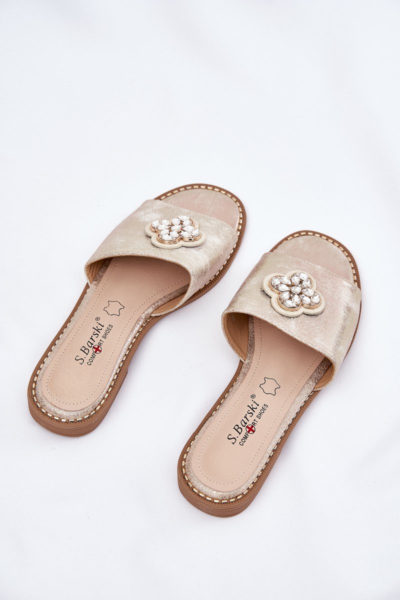 Elegantiškos moteriškos šlepetės, pagamintos iš aukštos kokybės eko odos, yra puikus pasirinkimas šiltoms dienoms. Dėl plokščio kulno jos suteikia patogumo ir stabilumo visą dieną. Odos vidpadis užtikrina komfortą ir tinkamą vėdinimą, ką ypač įvertinsite karštomis dienomis. Subtilus priekinis papuošalas suteikia ypatingo žavesio, derinant eleganciją su moderniu stiliumi. Šios šlepetės puikiai papildys tiek kasdienes, tiek formalesnes stilizacijas, puikiai derėdamos prie vasaros aprangos. Rinkdamiesi dydį, prašome vadovautis dydžių lentele.