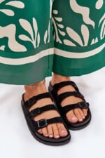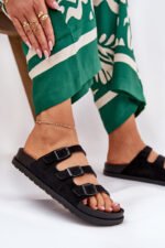 Moteriskos šlepetės pagamintos iš eko zomŠado – puikus pasirinkimas šiltoms dienoms. Šis modelis turi tris reguliuojamus dirželius su sagtimis, kurie užtikrins puikų prigludimą prie pėdos. Profiluotas vidpadis garantuoja patogumą visą dieną, todėl šios šlepetės yra idealus pasirinkimas pasivaikščiojimams ar atostogoms. Rinkdamiesi dydį, prašome vadovautis dydžių lentele.