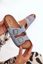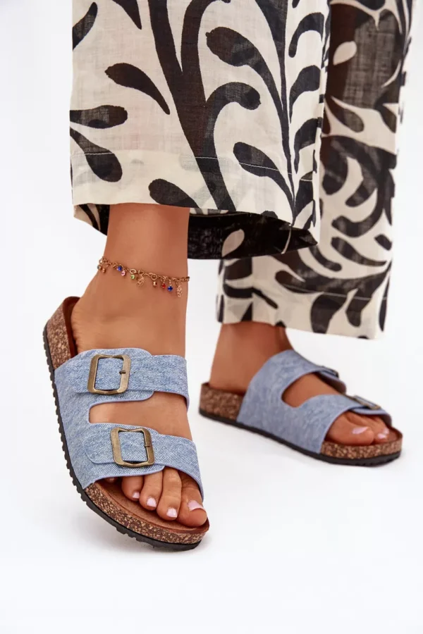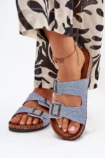 Moteriskos šlepetės su kamštinio pado platforma ir profiliuotu eko zomšo vidpadžiu – tai komforto ir madingos išvaizdos derinys. Du dirželiai su reguliuojamomis sagtimis užtikrina idealų prigludimą, o jų moderni išvaizda atitinka naujausias sezono tendencijas. Puikiai tinka vasaros stiliui, puikiai dera su suknelėmis, sijonais ar kelnėmis, suteikdami kiekvienai aprangai lengvumo. Renkantis dydį, prašome vadovautis dydžių lentele.