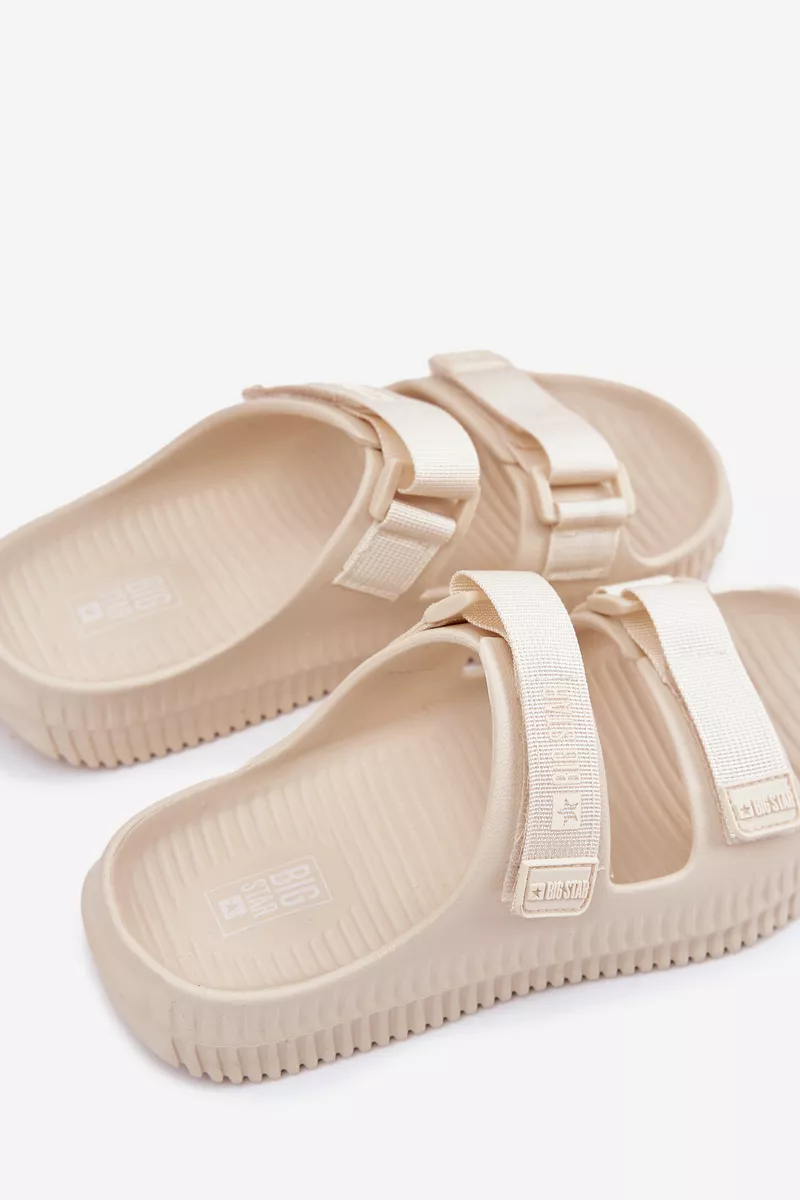 Moteriškos basutės iš Big Star su putomis ir lipukais yra nepakeičiama vasaros garderobo dalis. Pagamintos iš lengvos ir patogios medžiagos, šios basutės garantuoja komfortą net ir visą dieną vaikštant. Dvi Velcro juostos priekyje leidžia lengvai pritaikyti basutes pagal individualų pėdos dydį, užtikrindamos papildomą stabilumą.