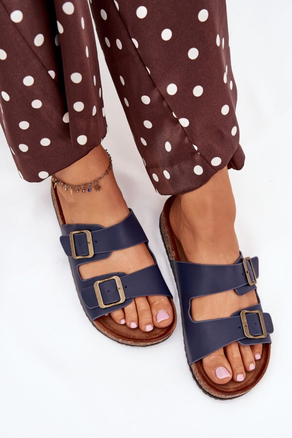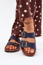 Moteriskos šlepetės su kamštinio pado platforma ir profiliuotu eko zomšo vidpadžiu – tai komforto ir madingos išvaizdos derinys. Du dirželiai su reguliuojamomis sagtimis užtikrina idealų prigludimą, o jų moderni išvaizda atitinka naujausias sezono tendencijas. Puikiai tinka vasaros stiliui, puikiai dera su suknelėmis, sijonais ar kelnėmis, suteikdami kiekvienai aprangai lengvumo. Renkantis dydį, prašome vadovautis dydžių lentele.