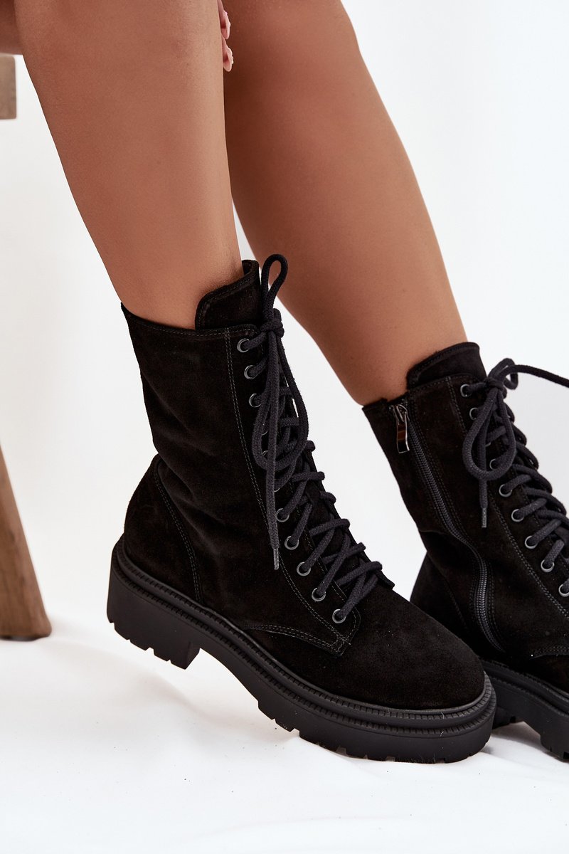 Damoskio tipo „workery“ aulinukai, pagaminti iš natūralaus zomšo, yra puikus pasirinkimas moterims, vertinančioms stilių ir patogumą kasdieninėje avalynėje. Minkšta, maloni liesti oda suteikia elegancijos. Tvirtas platforminis padas su plokščiu kulnu užtikrina stabilumą ir komfortą dėvint, o suapvalinti priekiai suteikia klasikinę, nesenstančią išvaizdą. Vidus yra apšildytas, todėl batai puikiai apsaugo nuo šalčio rudens ir žiemos sezonu. Modelis sujungia raištelių suvarstymą su užtrauktuku, todėl yra ne tik madingas, bet ir funkcionalus – lengva apsiauti ir gerai priglunda prie pėdos. Tai aulinukai, kurie puikiai tiks prie laisvalaikio stiliaus, pabrėždami modernų kiekvienos aprangos charakterį. Rinkdamiesi dydį, vadovaukitės žemiau pateikta dydžių lentele.
