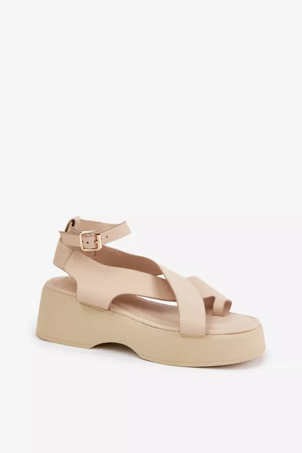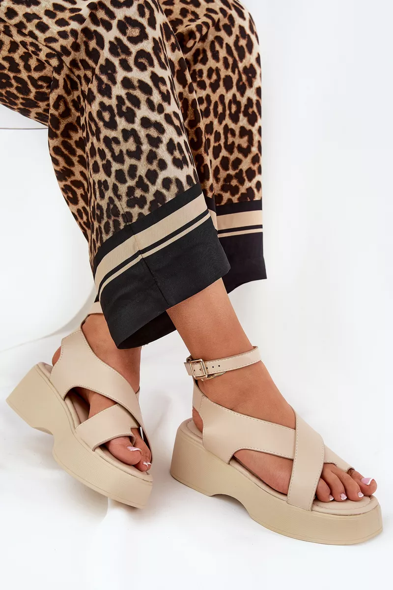 Sandalai su platforma suteikia jums papildomo aukščio, tuo pačiu išlaikydami stabilumą ir patogumą. Kulnas, nors ir elegantiškai blyškesnis, užtikrina eleganciją ir moteriškumą. Segiamas aplink čiurną su sagtimi ir reguliuojamomis juostelėmis, šis modelis siūlo individualų pritaikymą kiekvienam pėdai, taip užtikrindamas maksimalų patogumą visos dienos metu.