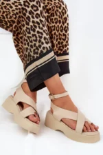 Damos sandalai platformoje eko odos, smėlio spalvos – tai ideali pasirinkimo galimybė moterims, ieškančioms stiliaus ir patogumo derinio. Šie sandalai pagaminti iš aukštos kokybės ekologiškos odos, kuri užtikrina ilgalaikį naudojimą ir komfortą. Smėlio spalvos yra ne tik elegantiška, bet ir universali, lengvai derinanti su įvairiomis aprangos spalvomis ir stiliais.