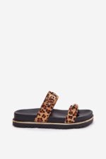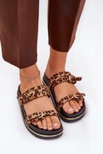 Moterims skirtos platforminės basutės su leopardo raštu, dirželiais ir sagtimis, rudos spalvos Ziferte