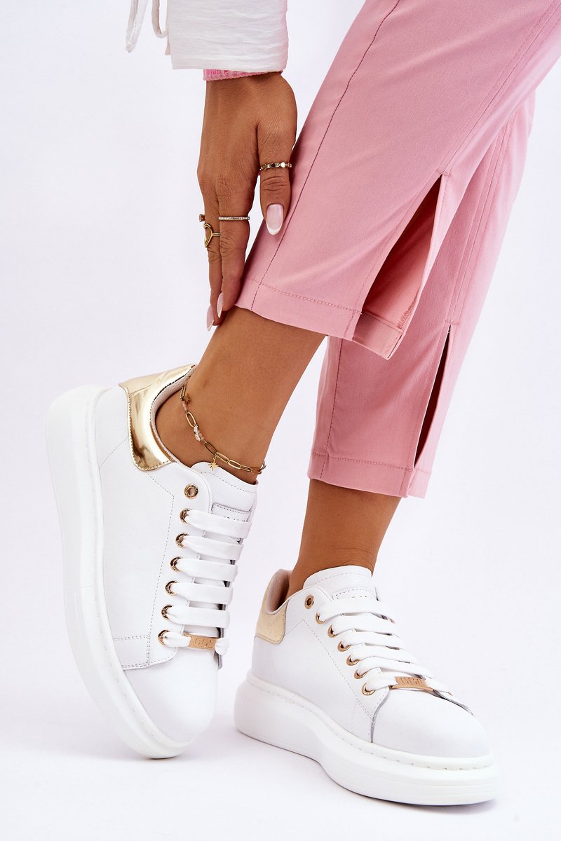 Išskirtiniai GOE sportiniai bateliai, pagaminti iš aukštos kokybės natūralios odos. Batų viršaus gale yra dekoratyvinis, veidrodinis įdėklas su GOE prekės ženklo logotipu. Minkštas, eko odos vidpadis garantuoja komfortą visą dieną. Pastatytas ant platformos. Klasikinis suvarstymas leis tinkamai pritaikyti avalynę pagal pėdos platumą. Būtinai turėkite šį nuostabų modelį savo spintoje! Renkdamiesi dydį, prašome remtis dydžių lentele.
