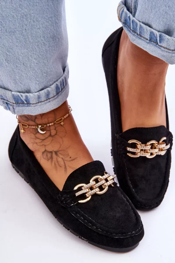 Moteriski mokasinai pagaminti iš eko zomšos. Priekyje turi dekoratyvinę grandinėlę su deimantukais. Mokasinai sumontuoti ant platformos su guminiu, neslystančiu padu. Minkštas eko odos vidpadis užtikrins patogų dėvėjimą. Privalote juos turėti! Rinkdamiesi dydį, vadovaukitės dydžių lentele.