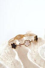 Būkite pirmas aprašęs “Moteriška apyrankė su gėlėmis iš nerūdijančio plieno, auksinė”