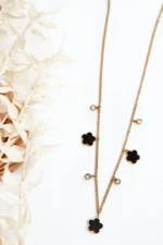 Moteriška grandinėlė su juodais gėlių motyvais, auksinė