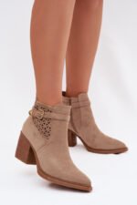 Moteriški akyti batai su akytu raštu ir aukso sagtimi, smėlio spalvos „Deloriah“