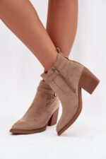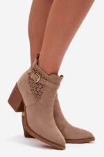 JEZZI prekės ženklo moteriški auliniai batai yra elegantiškas pasiūlymas su mados charakteriu. Pagaminti iš ekologiško zomšos, atrodo stilingai ir moteriškai. Modelis išsiskiria su atviromis nėrinėjimo detalėmis šone ir auksine sagtimi. Smailios nosys vizualiai lieknina koją, o stabilus blokinis kulnas užtikrina komfortą ir pasitikėjimą žingsnyje. Užsegimas su užtrauktuku palengvina greitą užsidėjimą. Šie batai puikiai tinka tiek kasdieniams, tiek elegantiškesniems įvaizdžiams. Renkantis dydį, vadovaukitės dydžių lentele.