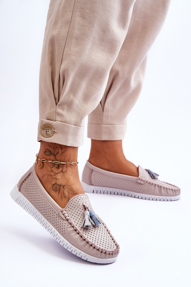 Moteriški atvirą raštą turintys odiniai loaferiai, šviesiai rožiniai Lanzarot EVENTO