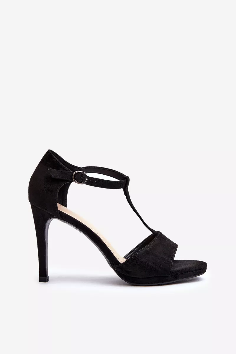 Stilingos juodos aukštakulnės sandalai iš ekologiško veliūro