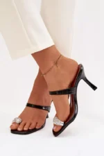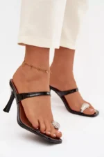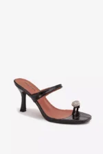 Elegantiškos moteriškos ekologiškos odos basutės – tai unikalus pasiūlymas moterims, vertinančioms stilių ir moterišką išvaizdą. Plonas kulninis kulnas gražiai pabrėžia siluetą, suteikdamas lengvumo ir elegancijos. Juostelė per pėdos vidurį užtikrina stabilumą, o dekoratyvinė, brangakmeniais puošta detalė ant piršto traukia akį ir suteikia visam bateliui prabangos. Šis modelis puikiai tinka vakariniams išėjimams, vakarėliams ir ypatingoms progoms. Renkantis dydį, prašome remtis dydžių lentele.