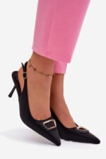 Moteriški tekstiliniai sandalai – stilingas pasirinkimas moterims, norinčioms pabrėžti savo aprangos eleganciją. Smailus pirštas suteikia lengvumo ir vizualiai pailgina kojas, o ryškus detalė priekyje prideda madingo akcento. Plonas smailus kulnas gražiai formuoja siluetą, o reguliuojamas dirželis su sagtimi leidžia patogiai pritaikyti batą prie kojos. Tai puikus pasirinkimas ypatingoms progoms, vakarėliams ir vakariniams išėjimams. Renkantis dydį, prašome remtis dydžių lentele.