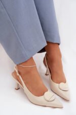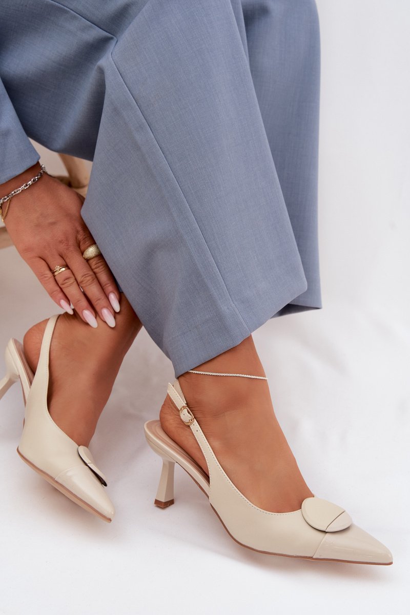 Moteriški sandalai, pagaminti iš ekologinės odos, yra siūlomi moterims, kurios vertina elegantišką stilių ir moteriškus detales. Aštrios nosys vizualiai lieknina koją, pabrėždamos liekną batų liniją. Modelis su stileto kulnu suteikia siluetui lengvumo ir elegantišką charakterį. Priekyje yra dekoratyvinis elementas, kuris patraukia dėmesį ir suteikia visumai išskirtinį išraišką. Reguliuojamas dirželio su sagtimi leidžia pritaikyti prie kojos, užtikrinant patogumą ir stabilumą. Šie stilingi sandalai puikiai tiks elegantiškoms išvykoms ir išskirtinėms progoms. Renkantis dydį, vadovaukitės dydžių lentele.