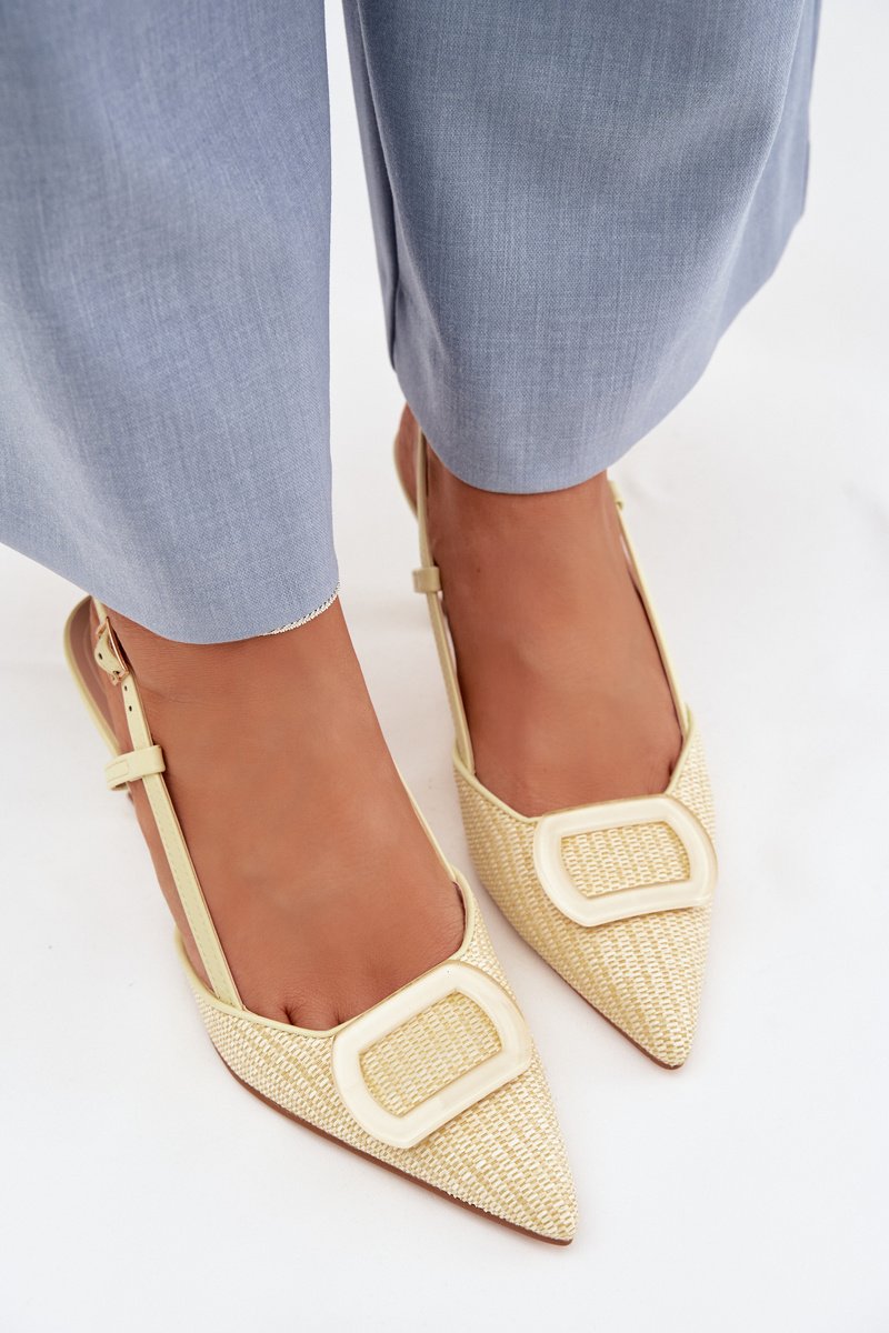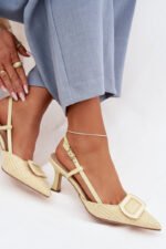 Moteriški aukštakulniai sandalai su dekoratyviniu elementu, geltoni „Eslina“