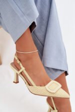 Būkite pirmas aprašęs “Moteriški aukštakulniai sandalai su dekoratyviniu elementu, geltoni „Eslina“”