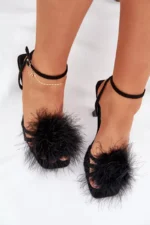 Elegantiškos moteriškos basutės iš eko zomšos, puikiai tinkančios ypatingoms progoms. Ant prašmatnaus aukštakulnio, jos išsiskiria subtiliu plunksnų papuošimu priekyje, suteikiančiu joms lengvumo ir rafinuoto charakterio. Reguliuojamas dirželis su sagtele leidžia idealiai priderinti prie pėdos. Tai unikalus pasirinkimas, kuris puikiai papildys vakaro ir kokteilių aprangą, patraukdamas akį savo nepakartojama išvaizda. Renkantis dydį, prašome vadovautis dydžių lentele.