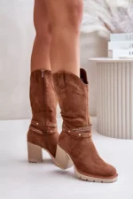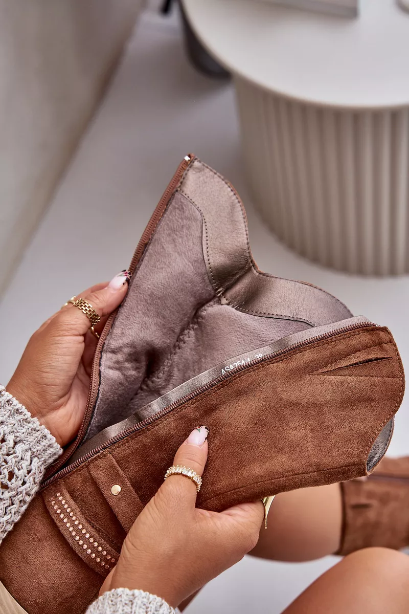Gražūs moteriški auliniai batai, prekės ženklo Jezzi. Pagaminti iš minkšto eko zomšo. Įmontuoti ant stabilaus stulpelio formos kulno, užtikrina patogumą dėvint visą dieną. Modelis užsegamas užtrauktuku. Vidus apšiltintas avalynės paklode. Batviršį puošia du persipynę dirželiai. Rinkdamiesi dydį, prašome vadovautis dydžių lentele.
